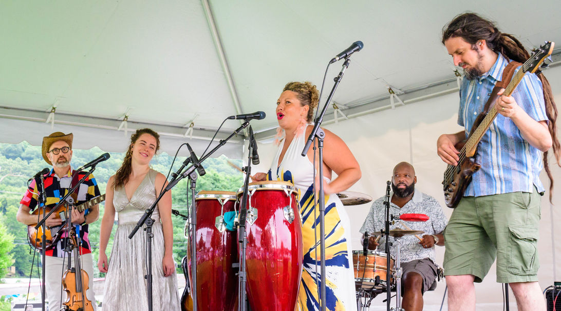 Venue is located at 6 Main Street, East Haddam, CT 06423. Free parking located in the Goodspeed parking lot and across the bridge at Eagle Landing. The walkway spanning the bridge from Eagle Landing will be open to pedestrians, so no shuttle service will be provided. Bring your lawn chair or blanket for seating. Food and drinks